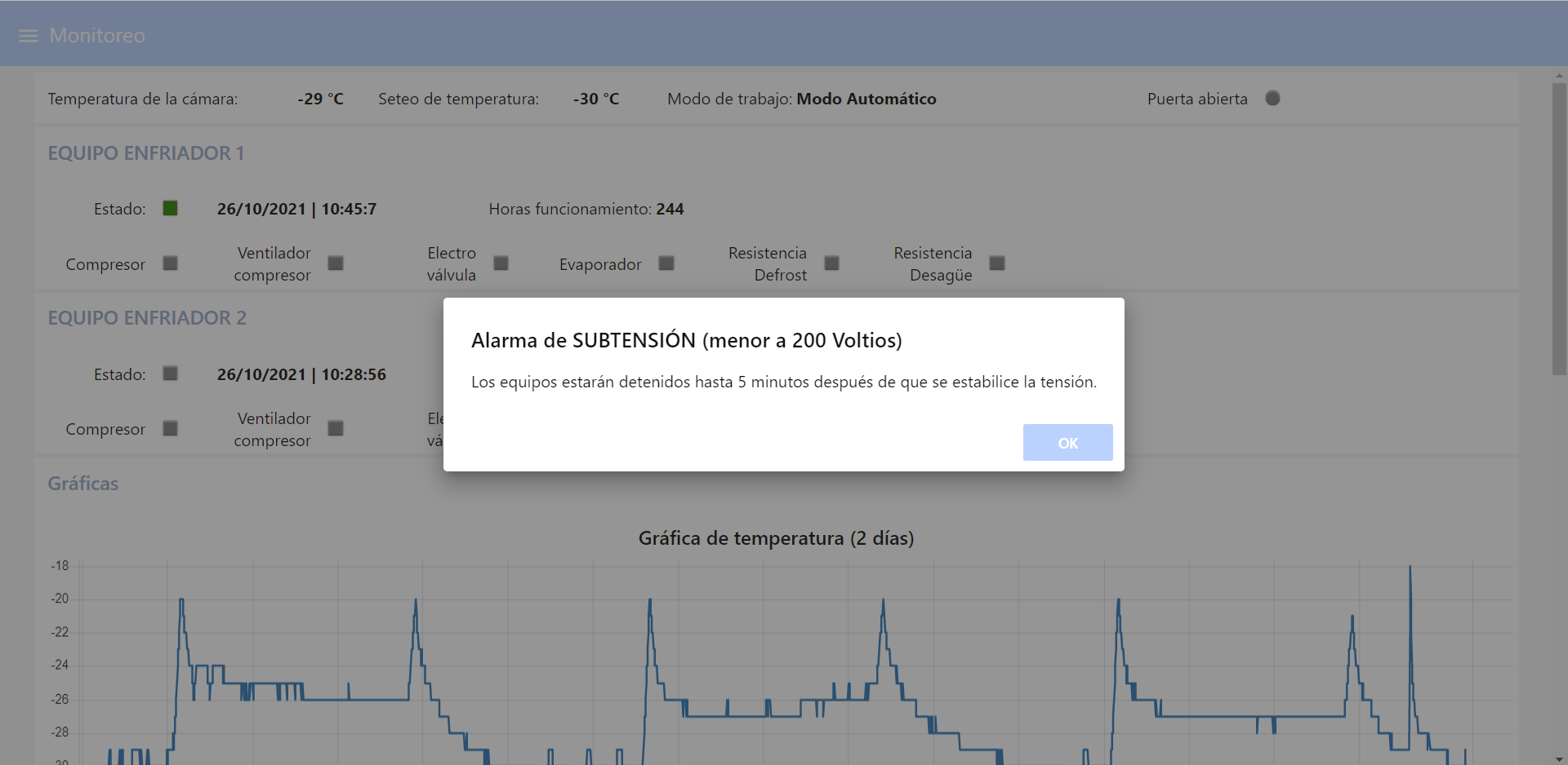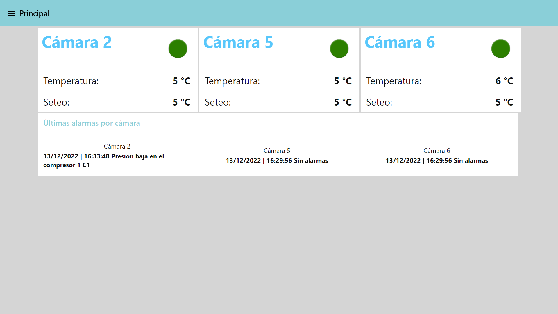 Paquete de monitoreo para vigilar 6 cámaras frigoríficas y 2 cámaras de congelación en tiempo real.