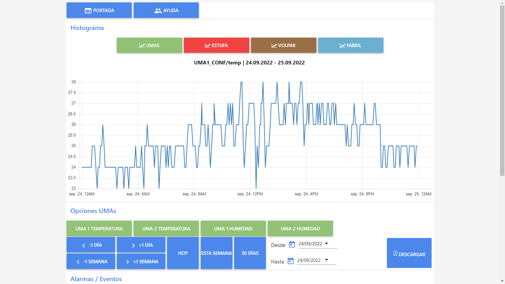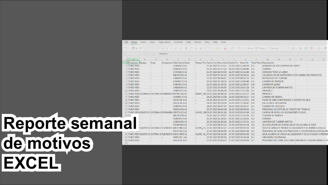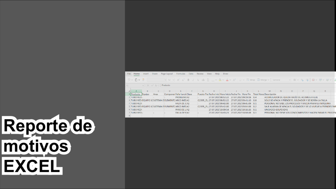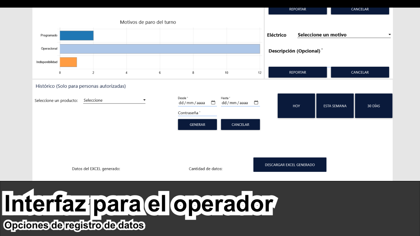 Registro de datos y motivos de parara. Históricos y exportación de datos.