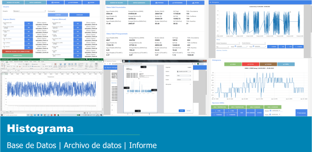 Registro de datos y motivos de paro, Histograma, exportación de datos.