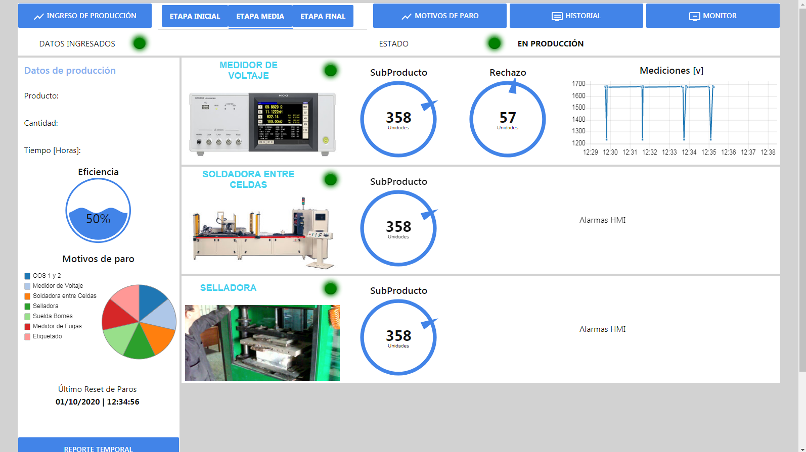 Al proyecto existente, se aumentó el calculo de más indicadores de producción y mantenimiento. Adicional, se desarrolló un cambio de diseño de personalización usando los últimos avances del sistema.