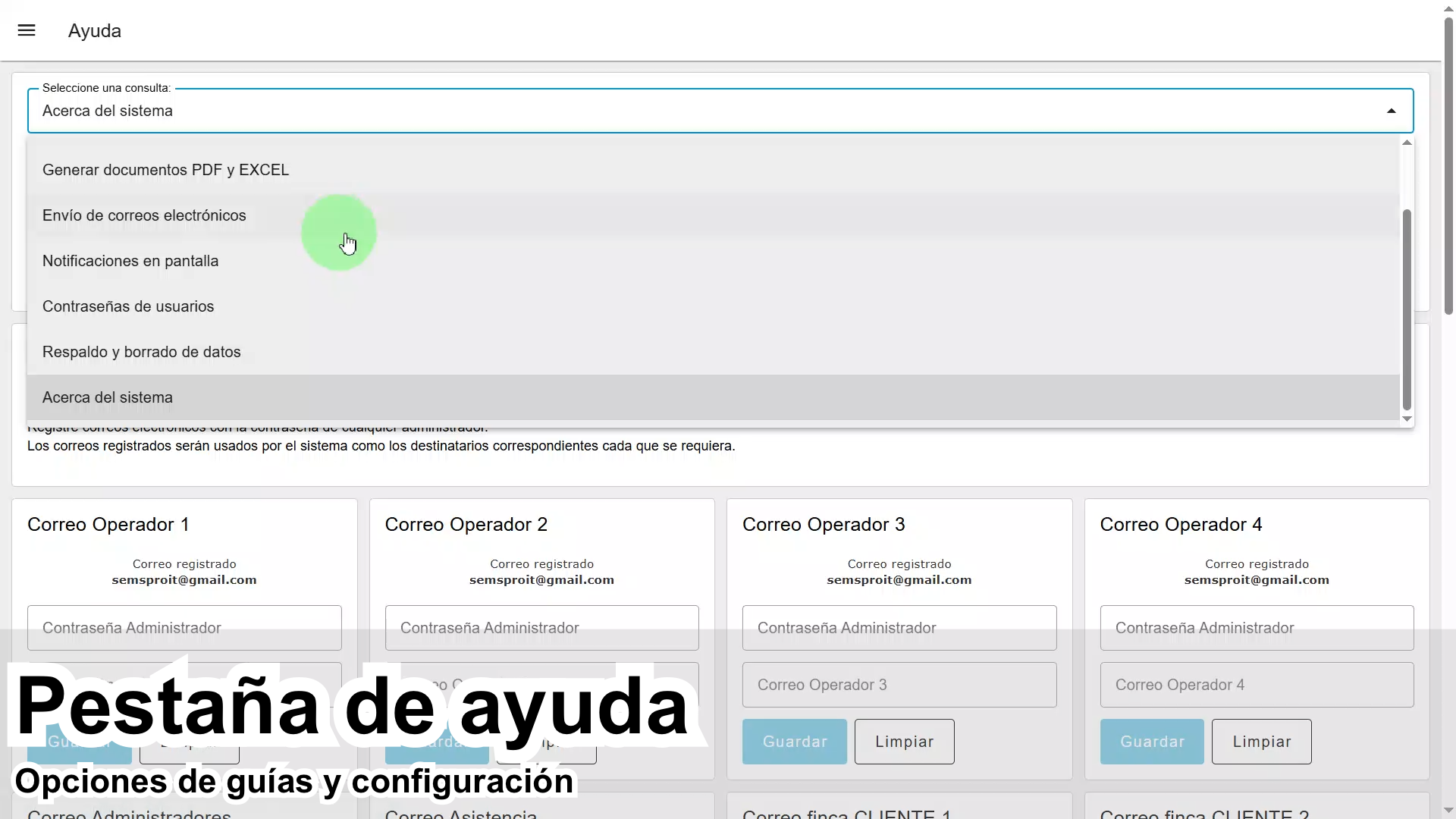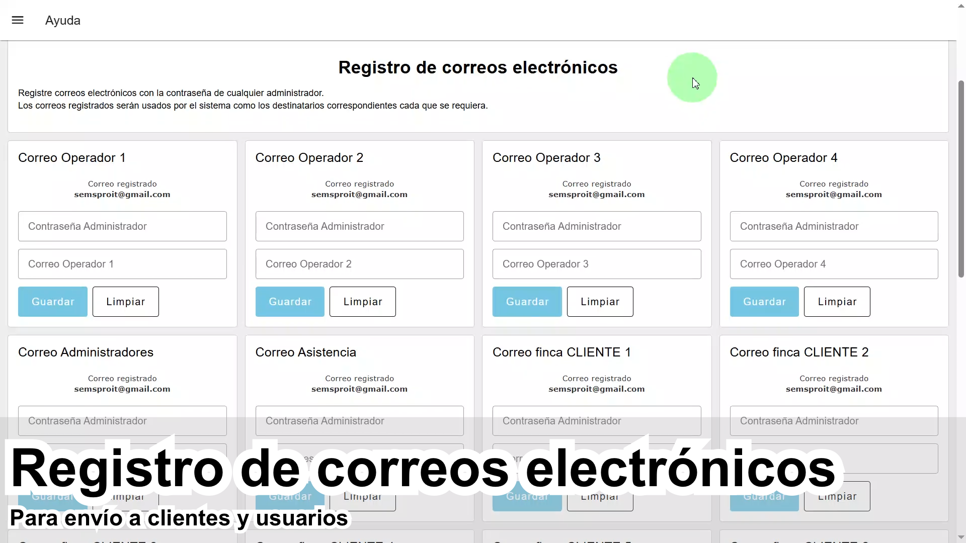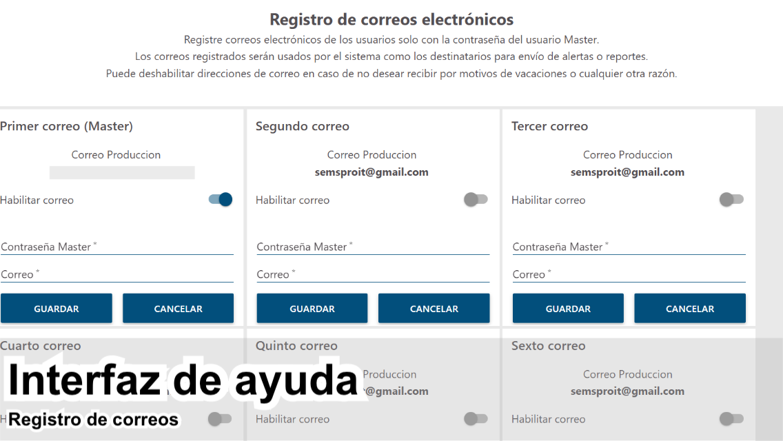 Envío de correos de eventos y alarmas.