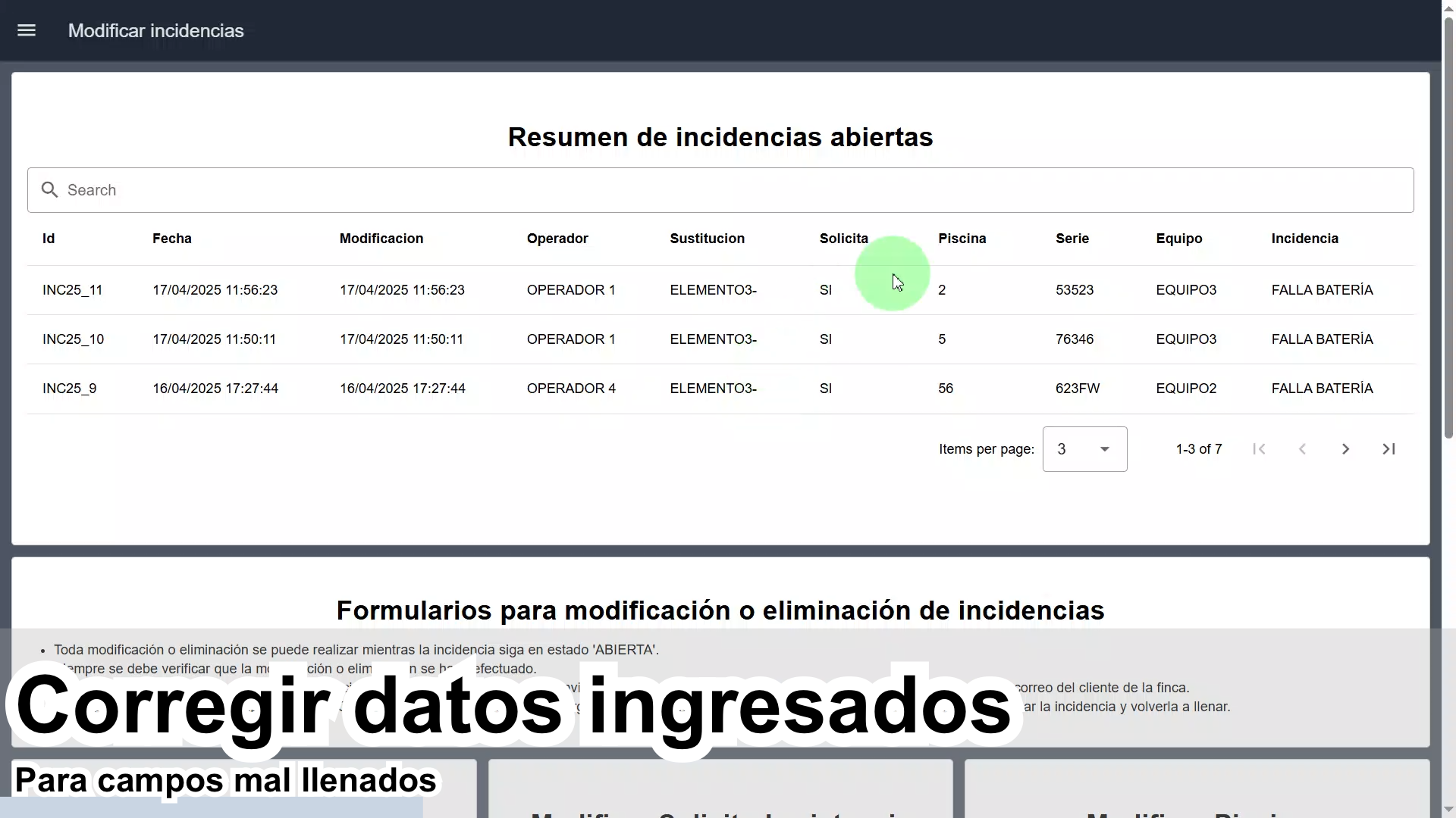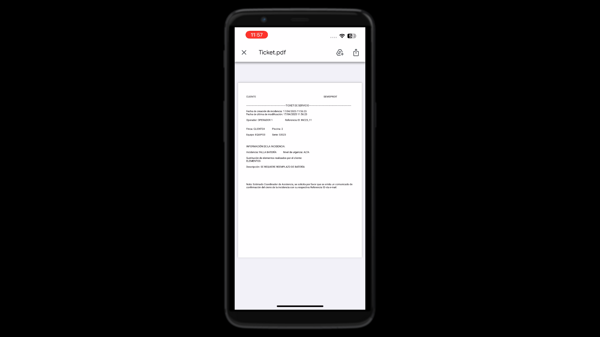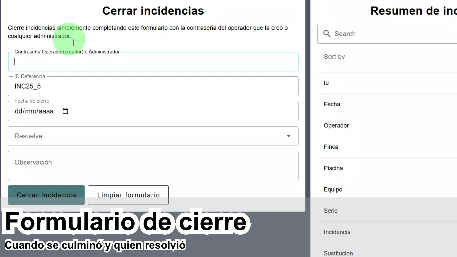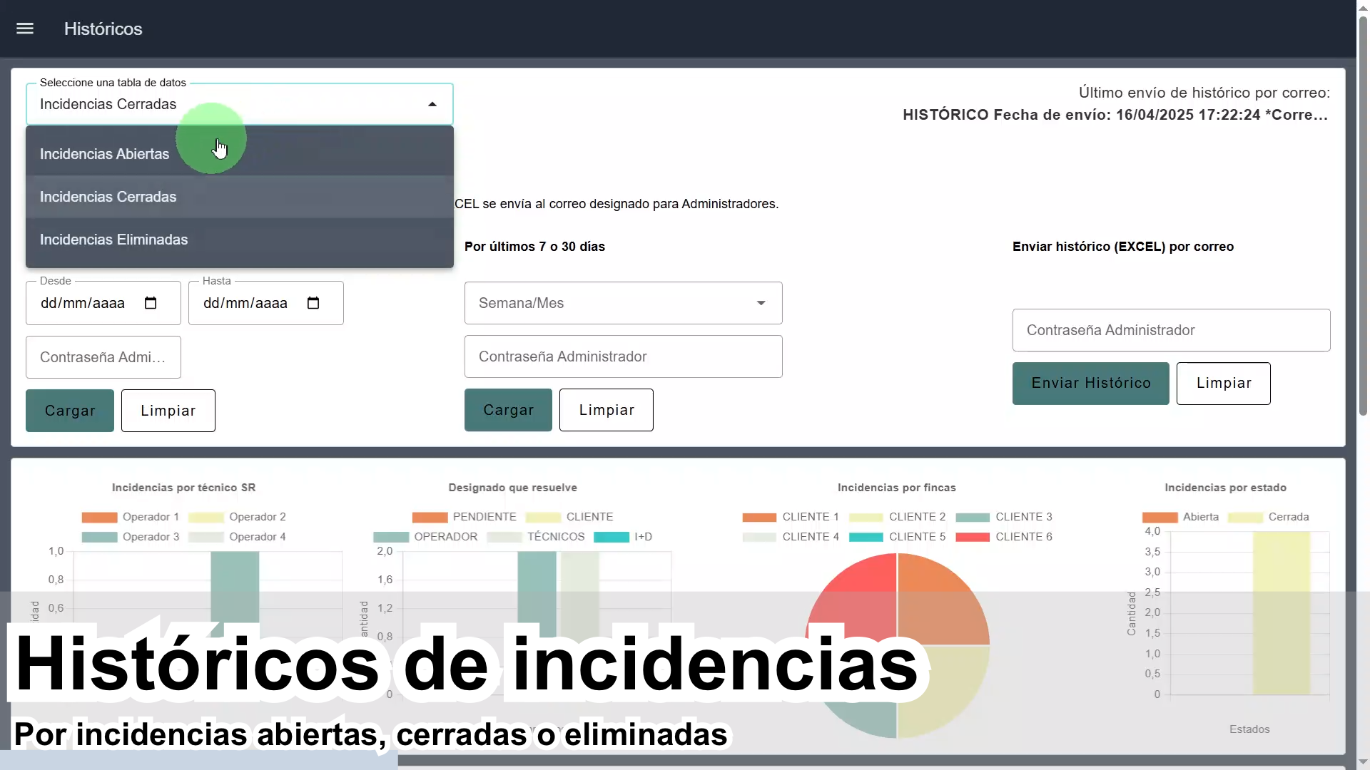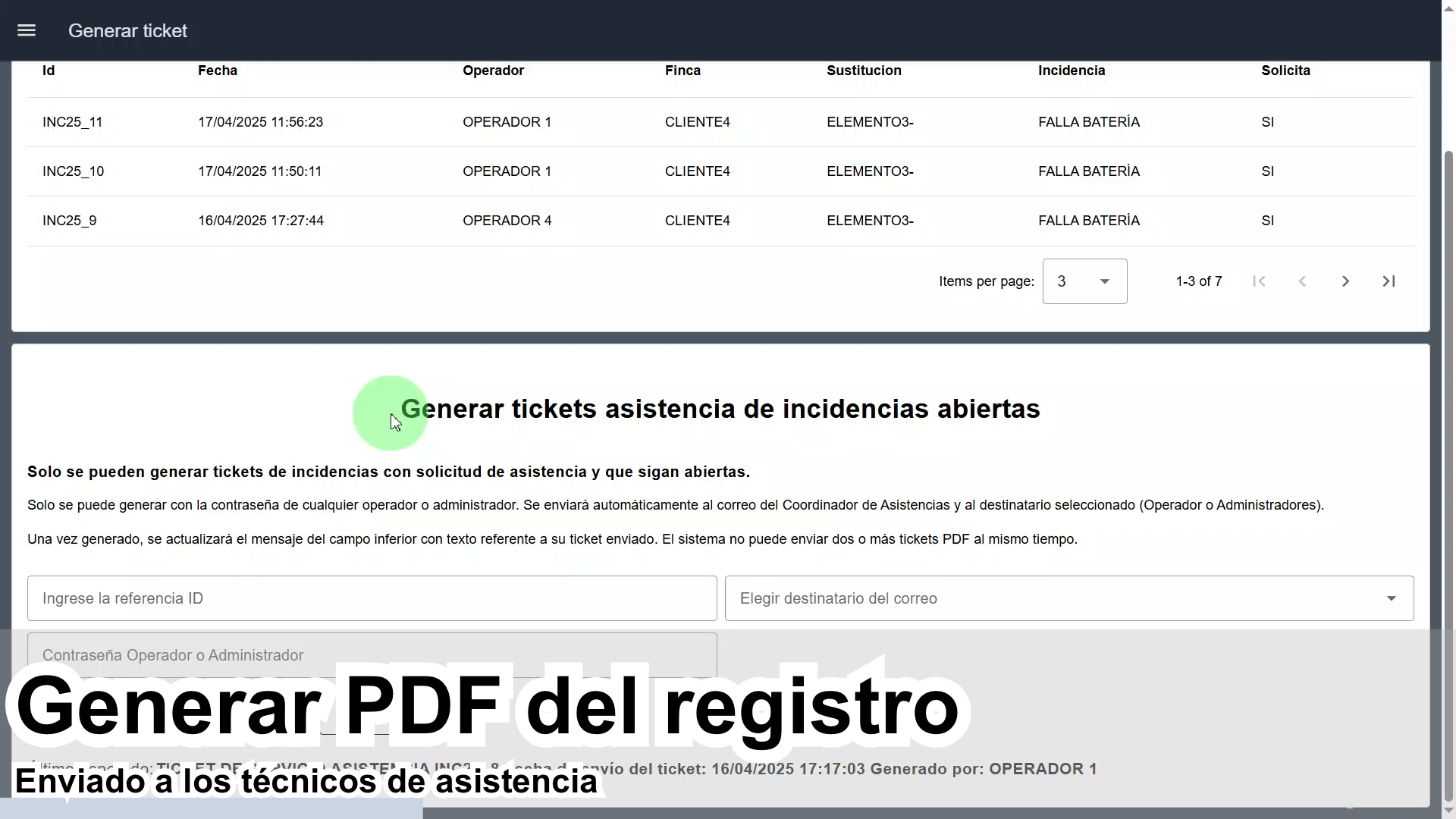 Modo servicio funcional desde la nube para registro de incidencias reportadas por sus clientes. Sistema ERP para registro, modificación, eliminación, y cierre de incidencias, llevando una trazabilidad completa.
