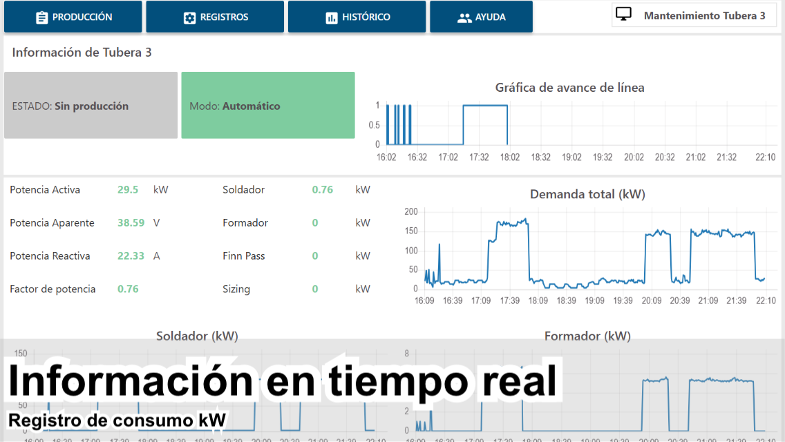 Paquete de supervisión para vigilar una línea fabricadora de tubos metálicos.