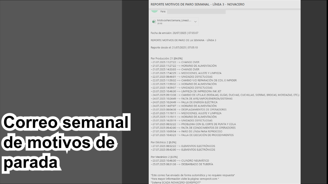 Envío de reportes de producción en formato PDF y EXCEL.