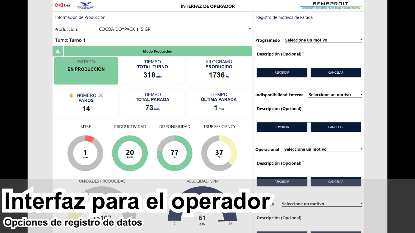 Registro de datos y motivos de paro.