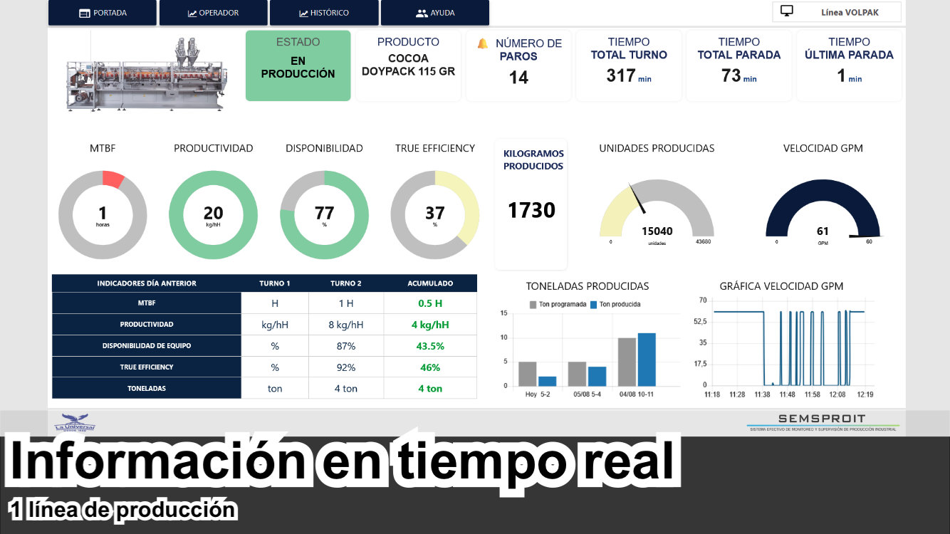 Paquete de supervisión para vigilar una línea empacadora de chocolate en polvo.