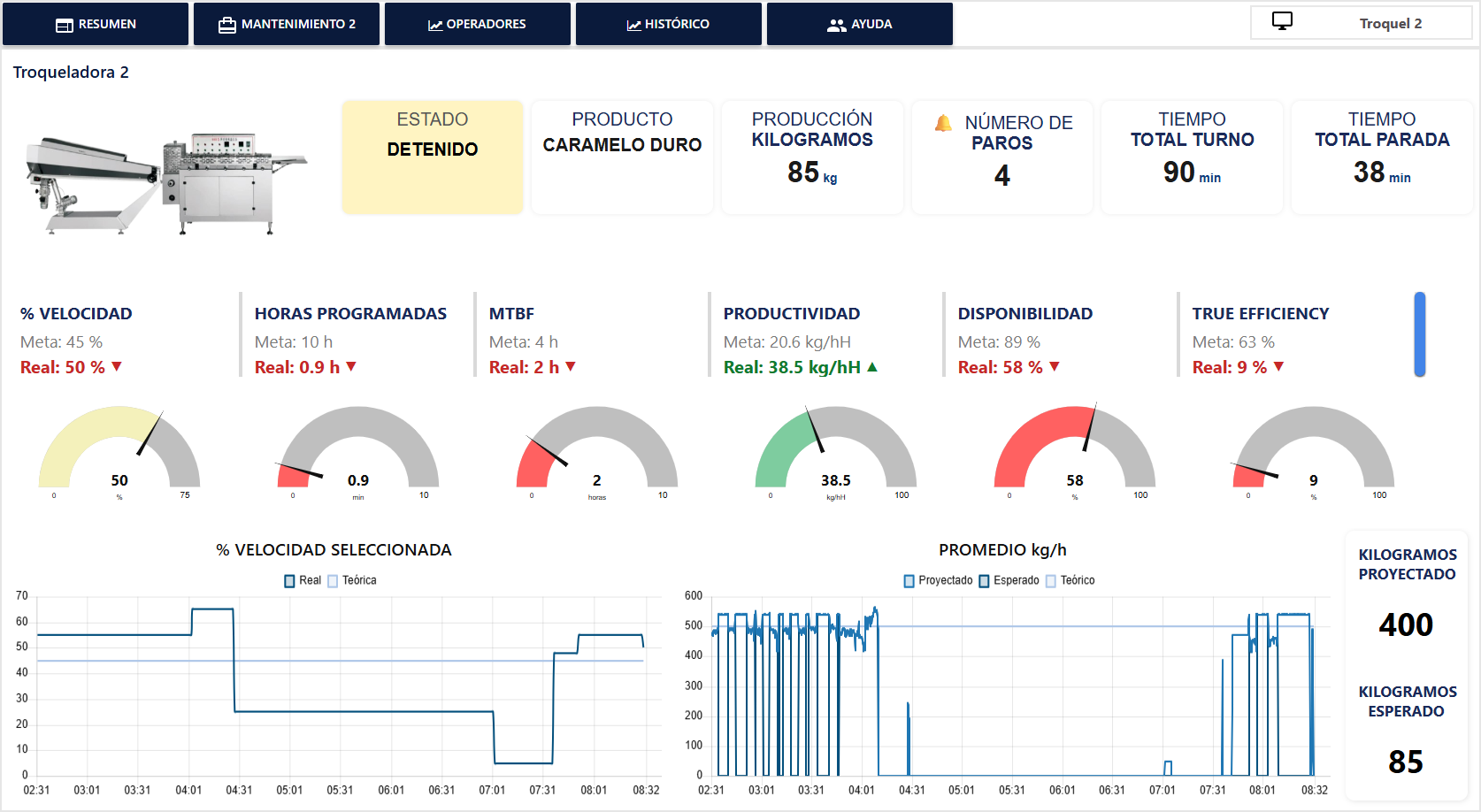 Supervisión en tiempo real, alertas claras e indicadores clave que permiten detectar anomalías rápidamente y tomar decisiones oportunas para mantener la producción bajo control.