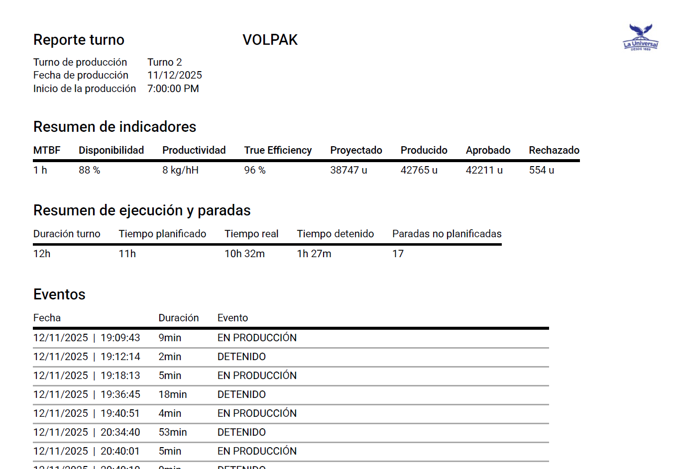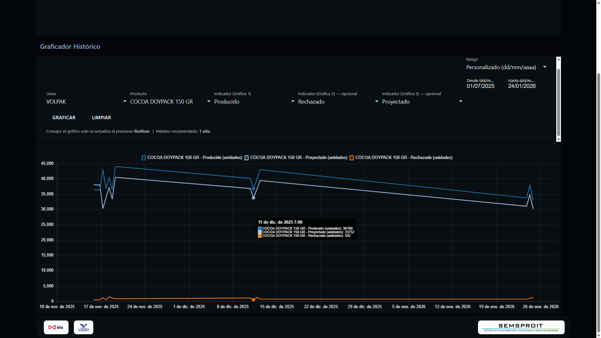 Indicadores de producción garantizados.